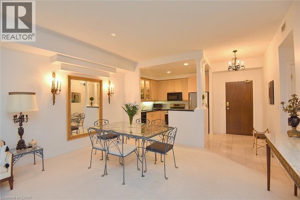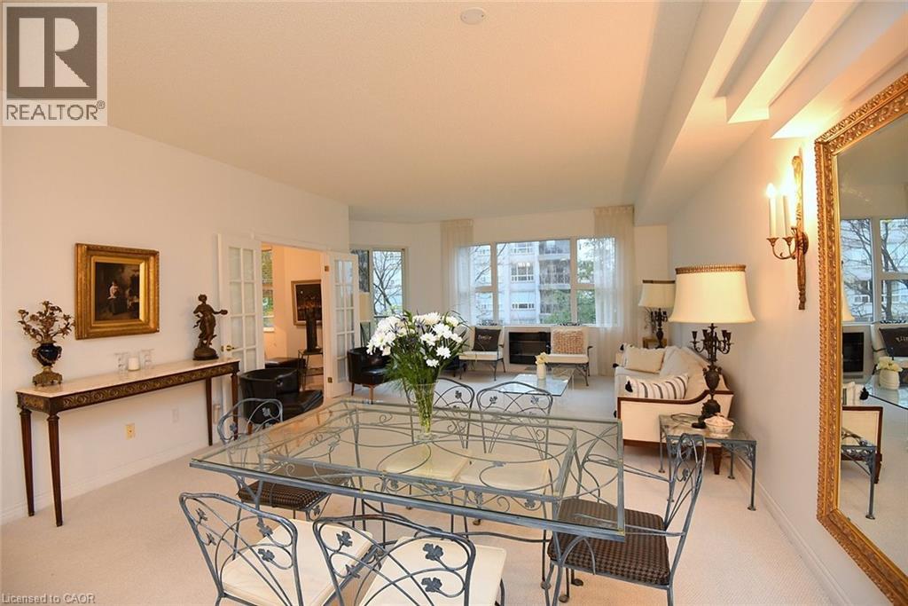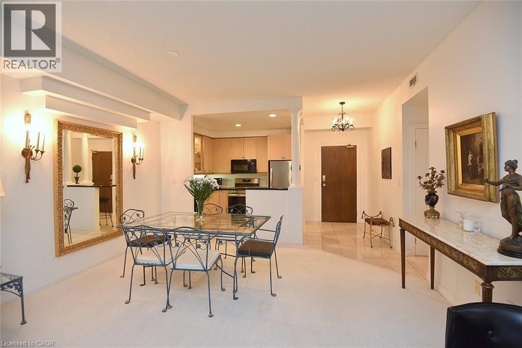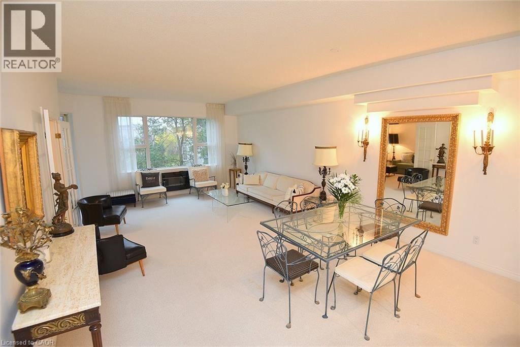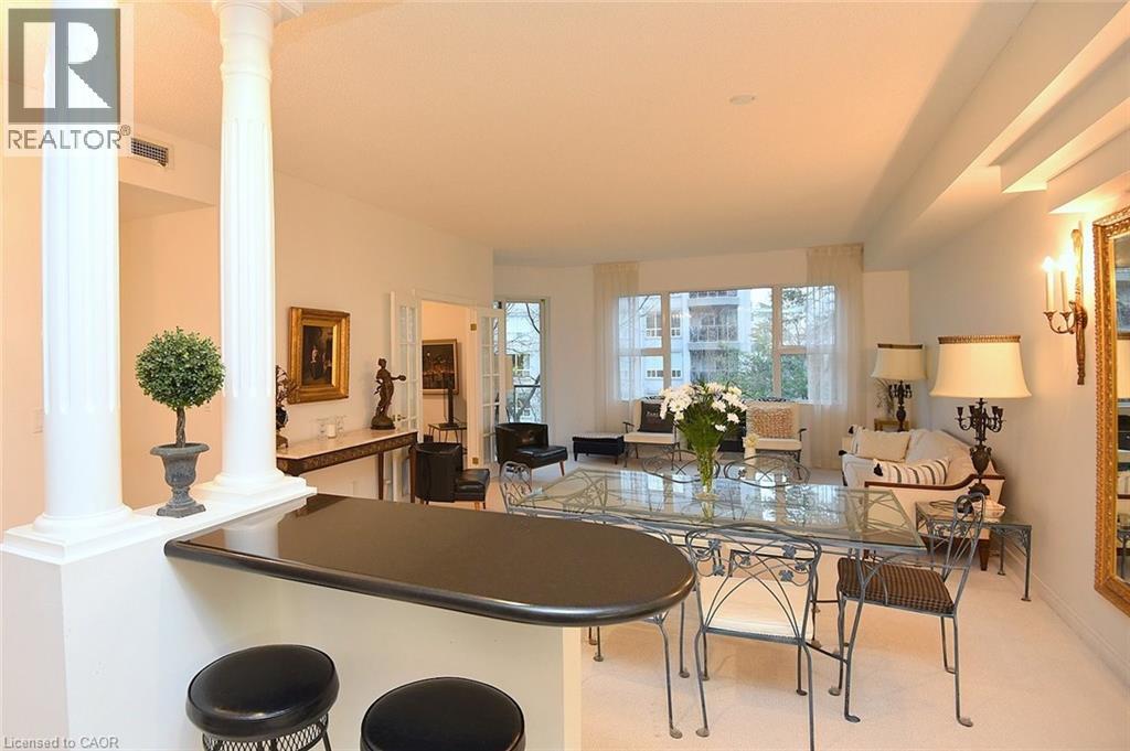 $706 MonthlyWelcome to this beautifully maintained 1,200 sq. ft., two bedroom, condo in one of Dundas’ most sought-after buildings! Boasting 9’ ceilings and an open-concept design, this bright and inviting home offers the perfect blend of comfort and convenience. The generous living and dining areas flow seamlessly into the well-appointed kitchen, creating an ideal space for both everyday living and entertaining. Step out onto the private balcony and enjoy peaceful views of the treed area and Spencer Creek — a serene backdrop right at home.The spacious primary bedroom features a walk-in closet and a 4-piece ensuite bath, providing a private retreat within this lovely unit. The second bedroom can be used as a family room or home office. Immaculately cared for, this condo is clean, bright, and move-in ready. The condo’s amenities include a guest suite, fitness room, sauna and a party room that boasts a full kitchen and a terrace with a BBQ, perfect for entertaining. Located close to all amenities, public transit, and scenic walking trails, this is condo living at its best in beautiful Dundas. Don’t miss your chance to call this exceptional property home! (id:30748)