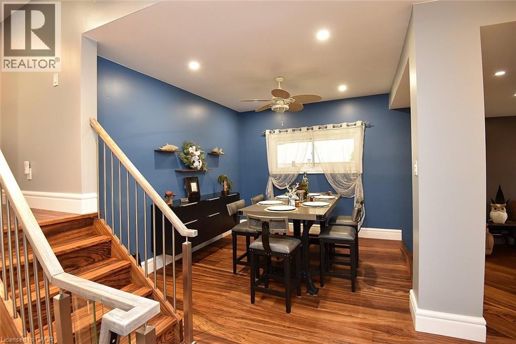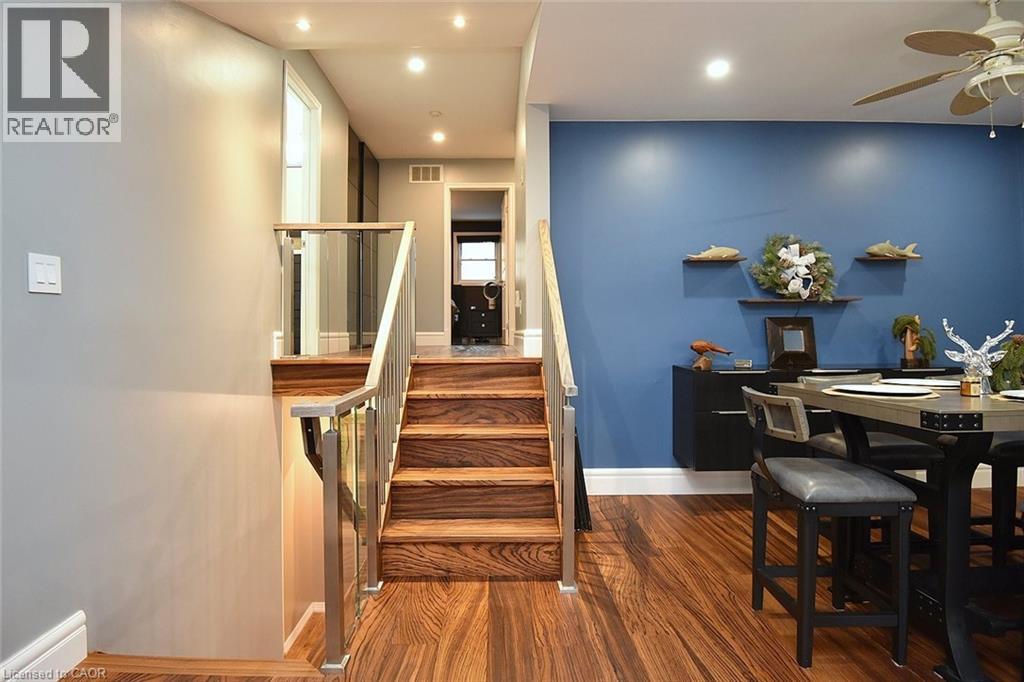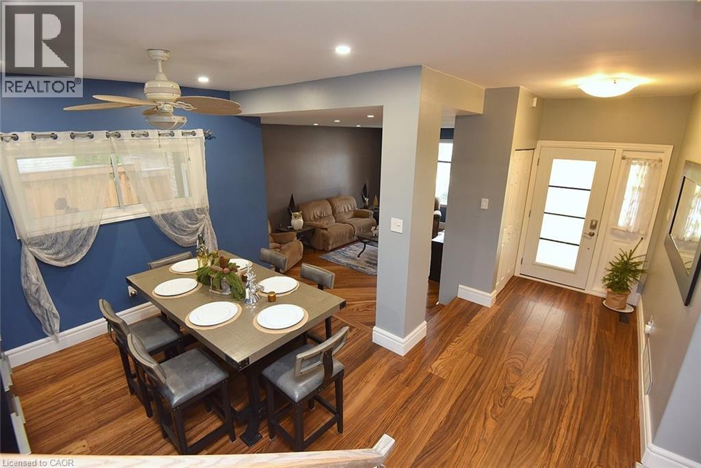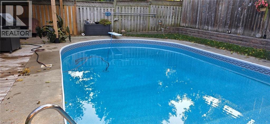 Perfect for everyday living and outdoor enjoyment, this updated 3-level backsplit offers comfortable family spaces inside and out. The fully fenced backyard features a saltwater inground pool, two gazebos, a mounted outdoor TV, and gas hookups for a BBQ and fire table—ideal for entertaining or relaxing at home. Sliding doors off the kitchen provide easy indoor–outdoor access. A concrete front walkway and patio add curb appeal. Inside, Zebrawood hardwood flooring flows through the open-concept living and dining area. The kitchen includes a full-size fridge and stand-up freezer, with direct access from the double garage for convenient grocery unloading. The home offers 3+1 bedrooms, 2 full baths including a primary ensuite, plus 1 half bath. All upper bedrooms feature IKEA closet systems, along with a IKEA linen closet in the hallway. The lower-level family room includes a built-in TV cabinet, electric fireplace, and flexible space for a play area or home office. The garage is equipped with built-in cabinets, counter space, and automatic doors. Conveniently located close to shopping, schools, recreation centres, the lake, and major highways. Updates include: electrical panel (2004); windows (2006–2008); IKEA kitchen (2010); pool pump (2015); Zebrawood flooring (2017); owned hot water tank (2020); pool filter (2021); salt system (2022); front door, insulated garage doors, kitchen window, microwave & dishwasher (2023); furnace (2024). (id:30748)