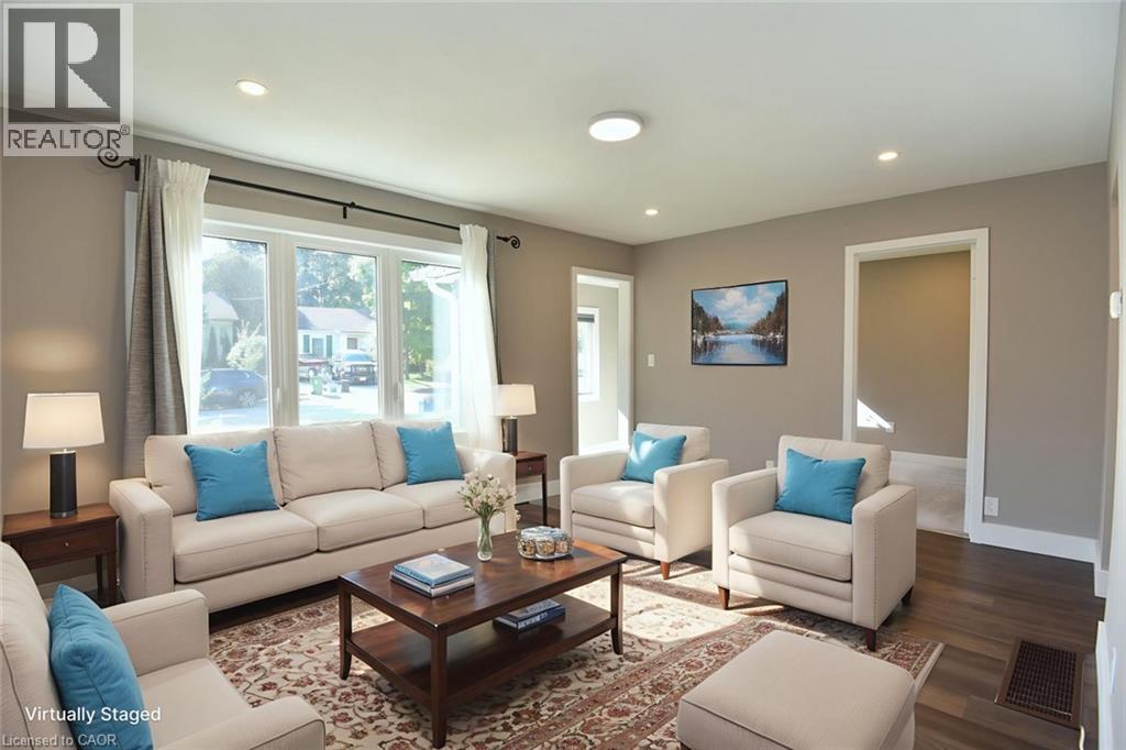 Fully renovated and move-in ready, this detached Dundas home combines modern design with everyday comfort. The stylish kitchen features stainless steel appliances, butcher block countertops, a light backsplash, under-cabinet lighting, and a double sink. Throughout the home, tasteful grey tiles and neutral tones create a fresh, cohesive look. Recent updates include a modernized bathroom, new windows and flooring, spray foam insulation, upgraded electrical and plumbing, new drywall, and fresh paint inside and out. Enjoy the concrete patio, landscaped yard, private backyard with two storage sheds, and a driveway with parking for three vehicles. Nearby Dundas Driving Park provides green space with playgrounds, trails, picnic areas, and sports facilities. Ideally located close to McMaster University, Westdale Village, downtown Hamilton, and a short 7-minute walk to downtown Dundas, with easy access to Waterdown, the Meadowlands in Ancaster, and Mapleview Mall in Burlington. View the virtual tour and contact us today to schedule your private showing! (id:30748)