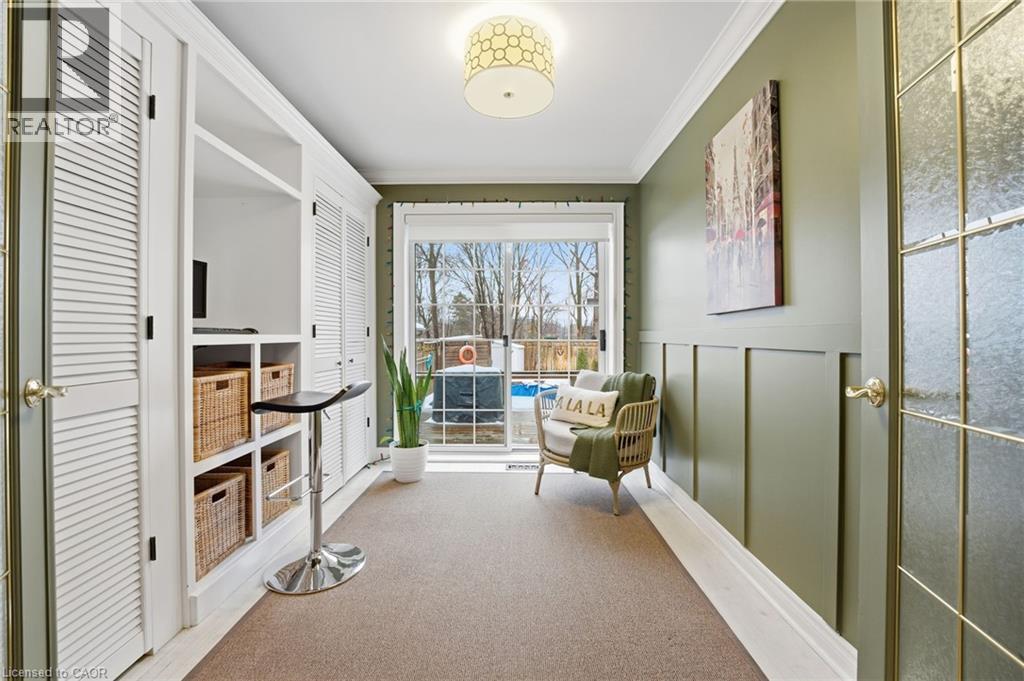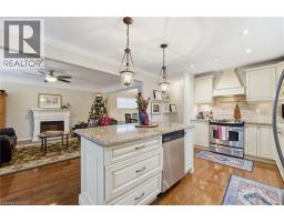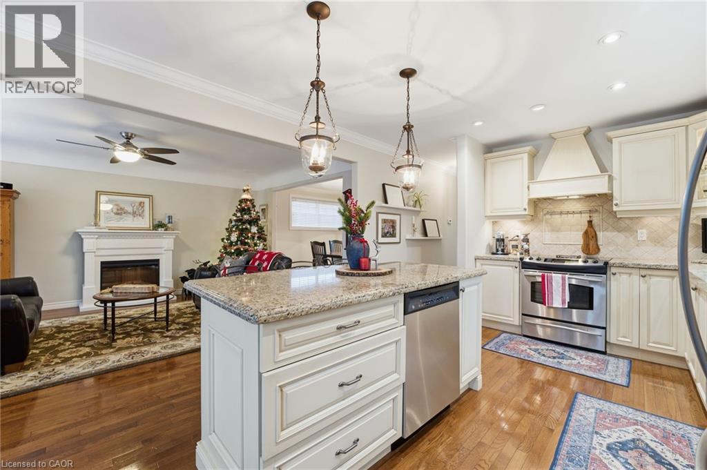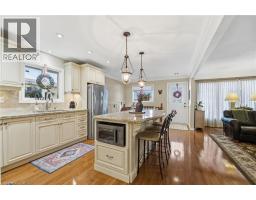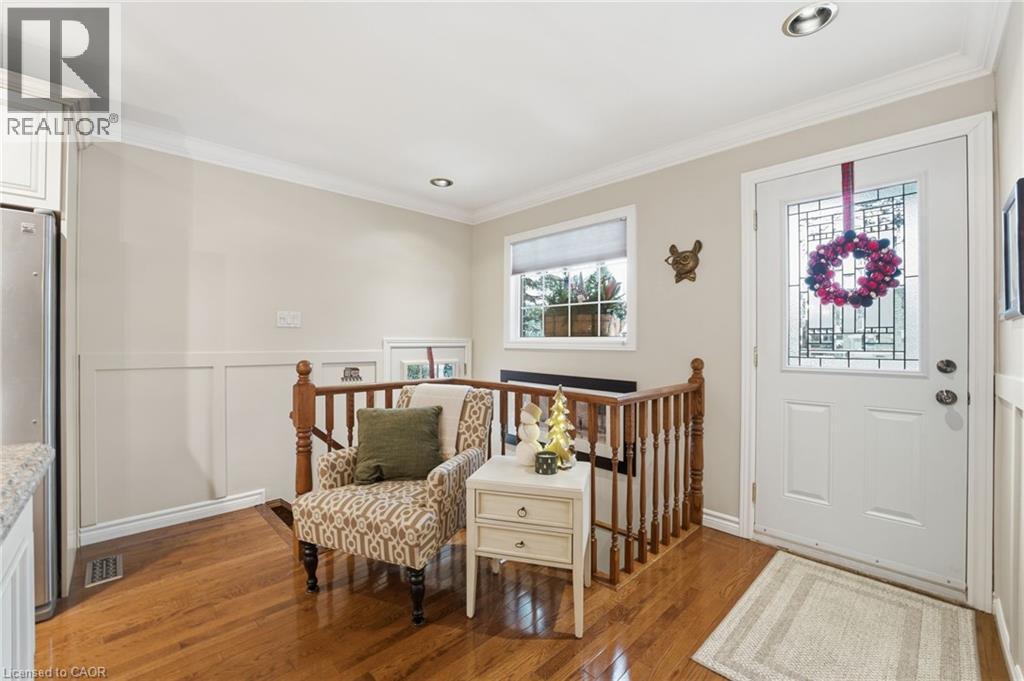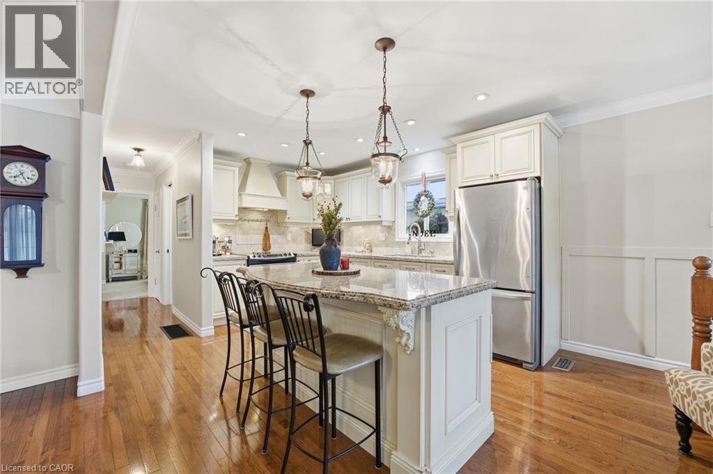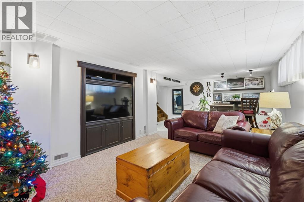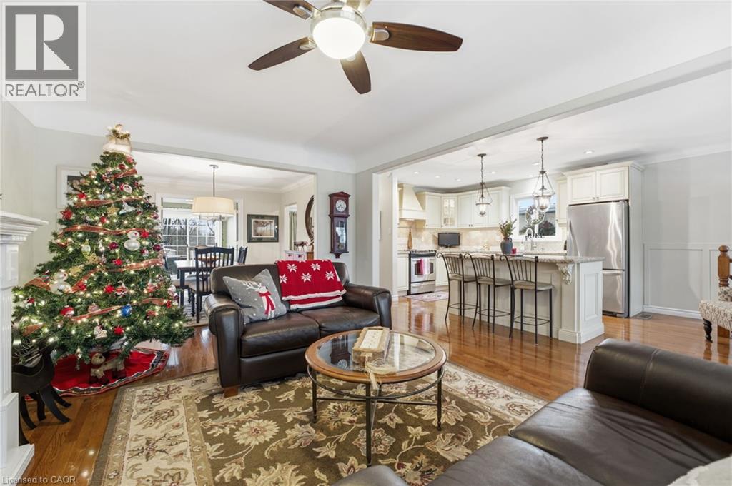 Welcome to 34 Ramsey Cres, a beautifully maintained home that blends modern upgrades with timeless charm. This beautifully maintained home offers an open-concept main floor featuring a stunning kitchen that flows seamlessly into the living and dining areas, perfect for entertaining or enjoying cozy family moments. Gleaming hardwood floors and elegant crown molding add sophistication throughout. The main level boasts two bedrooms and a stylish 4-piece bathroom, while a convenient side entrance leads to a fully finished basement complete with a third bedroom, a 3-piece bath, a warm recreation room with a Hamilton Brick hearth gas fireplace, a dry bar, laundry space, and ample storage. Step outside to an extended lot with a professionally landscaped yard, a two-tier deck with natural gas hookup for your BBQ, and a fully fenced backyard featuring an irrigation system, an above on-ground chlorine pool, and double sheds, both equipped with hydro. Backing onto serene green space with direct access to the Hamilton/Brantford Rail Trail, this property offers unmatched privacy and tranquility. Located in Hamilton’s highly desirable west end, you’ll enjoy proximity to top-rated schools, shopping, McMaster Hospital, and Downtown Hamilton. Notable Updates: Main Floor Kitchen Renovation (05’), Main Floor Electrical and 200-AMP Electrical Panel (05’), Main Floor Bathroom Renovation (12’), Roof (14’), Windows (15’), Soffit/Fascia/Eavestrough/Shaker Siding (15’), Pool Liner (15’), Exposed Aggregate Driveway and Sidewalk (18’), Front & Rear Yard Irrigation System (22’), Gas Fireplace (22’), Pool Pump and Sand Filter (23’). Don’t miss your chance to fall in love with this exceptional home! (id:30748)