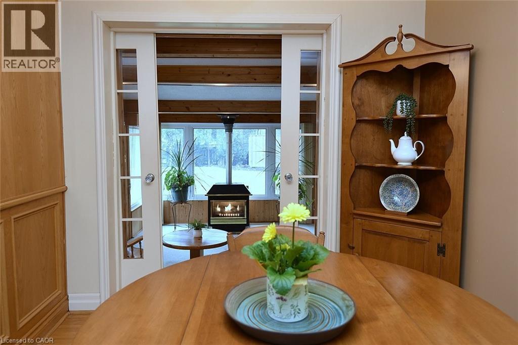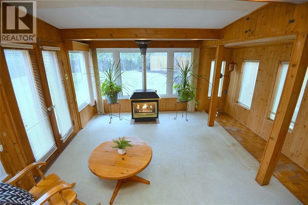 Offered for the first time, this charming bungalow presents a rare opportunity to own a well-maintained home on an expansive 75 x 110 ft lot in one of Dundas’ most peaceful and desirable neighbourhoods. Surrounded by mature trees and lush landscaping, the property offers a private, country-like setting while still being just minutes from town amenities. The home features three bedrooms, 1 bath and a bright, functional layout. The eat-in kitchen is filled with natural light from a skylight, creating a warm and inviting space for everyday living. A standout feature is the four-season room addition, complete with a gas fireplace and walkout to the patio and fully fenced backyard-perfect for relaxing or entertaining year-round. The lower level offers excellent additional space with large above-grade windows, a spacious recreation room, potential for a fourth bedroom, and ample storage throughout. Ideally located just steps from conservation area and Warren Park, and within walking distance to transit and the shops and amenities of downtown Dundas, this is a truly special property combining space, privacy, and convenience. (id:30748)